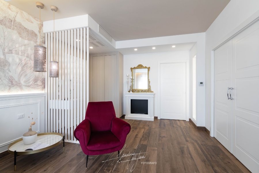 Il colore bianco degli elementi architettonici ha reso l’ambiente più luminoso, oseremmo dire “solare”.